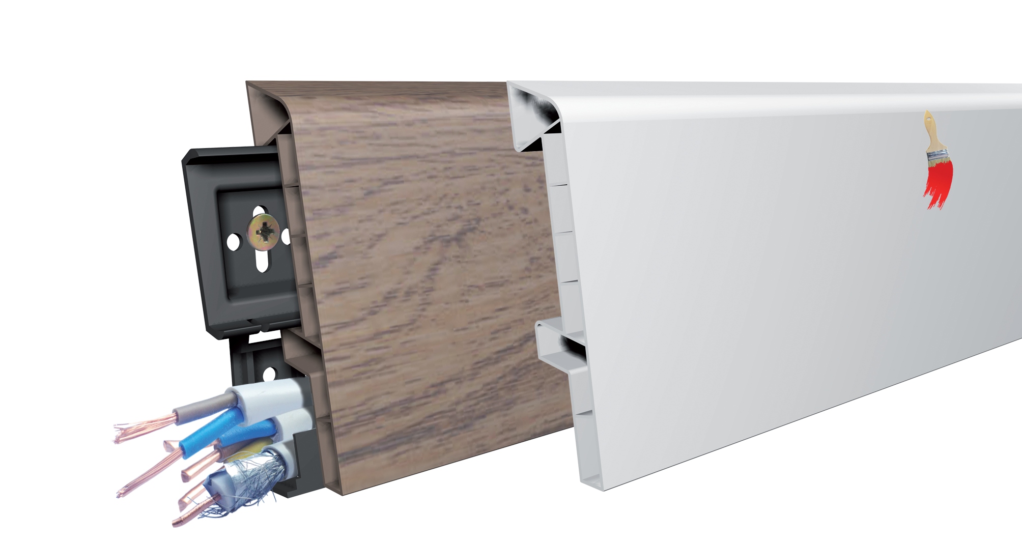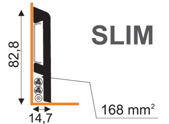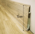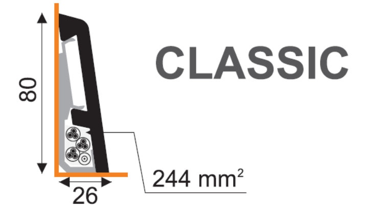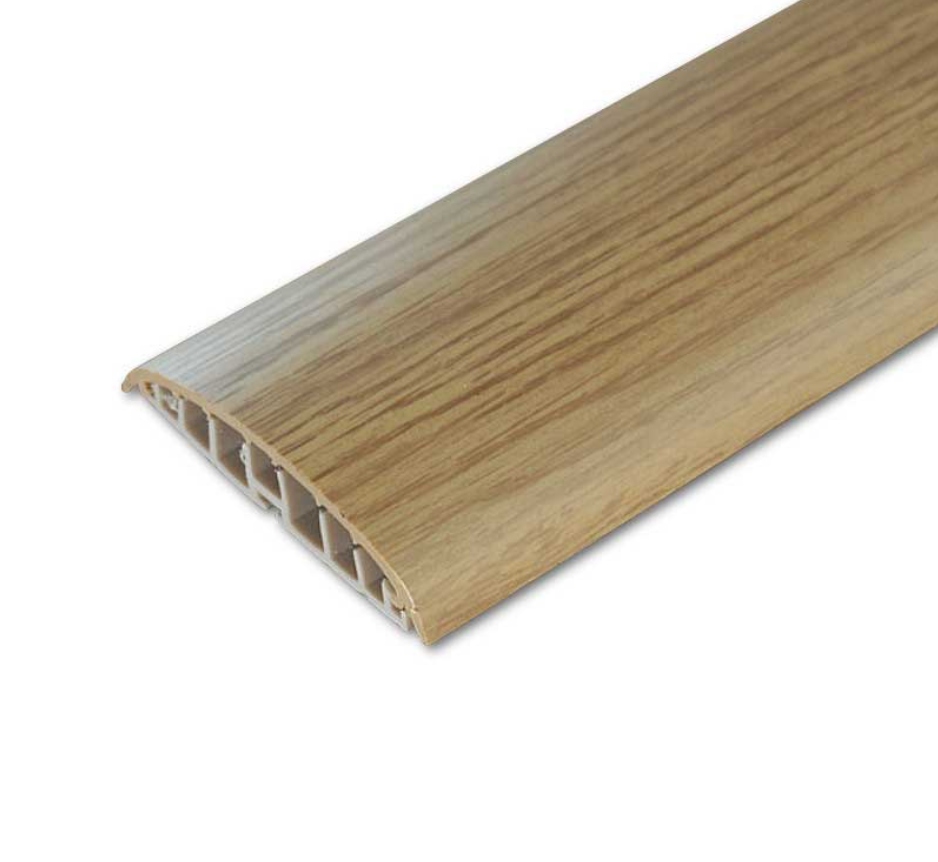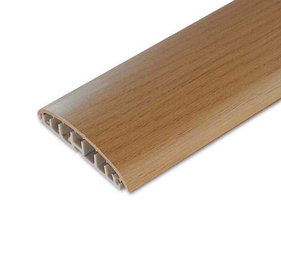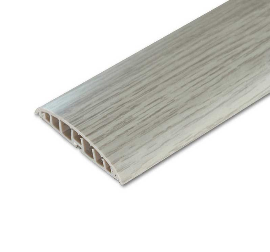 Vynikajúcou výhodou tejto lišty je maskovanie, ochrana a usporiadanie elektrických káblov. Je k dispozícii v mnohých farbách s drevodekorom, ktoré sú najbežnejšie na trhu s prírodnými a panelovými podlahami, ako aj v čalúnenej striebornej farbe. Dodáva sa so špeciálnymi montážnymi kolíkmi.
